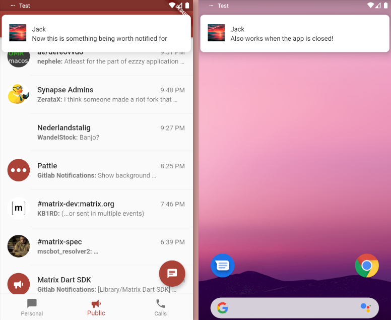 Note that this version will not be on TestFlight (yet) because notifications are currently only implemented on Android (using Firebase, so same goes for F-Droid for the time being).