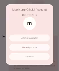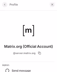 If you receive a message pretending to be the official account, you should report the message immediately. If you are a matrix.org user, you can use the "report user" function in your app or client to let us know.